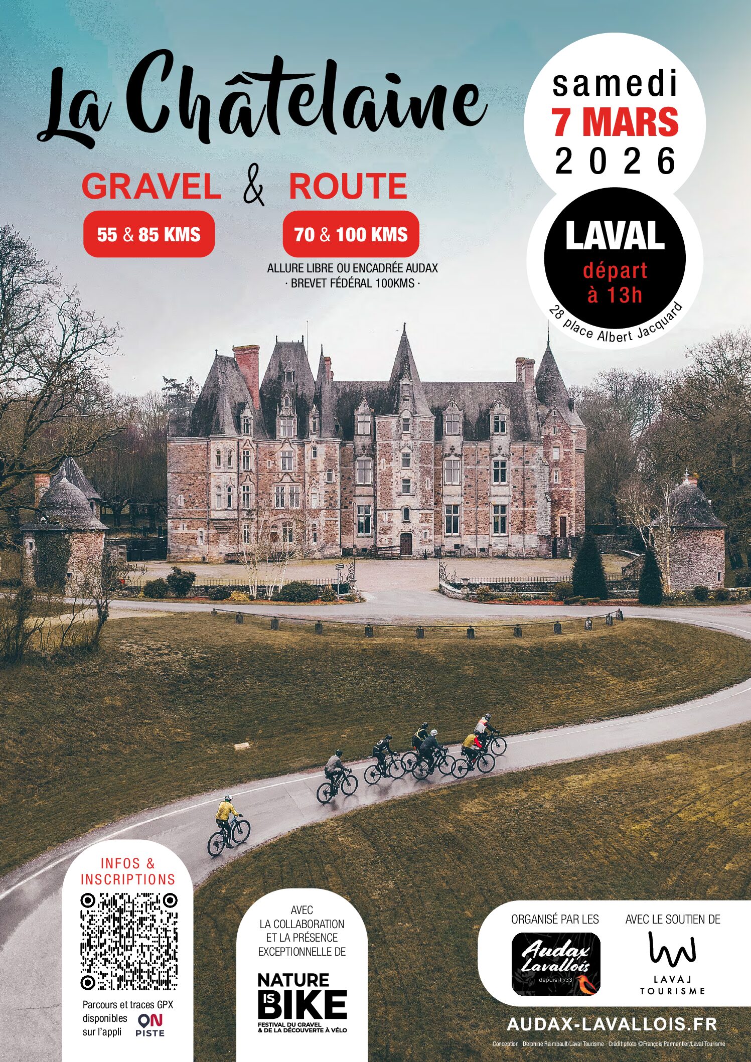 Les Audax Lavallois, en collaboration avec Laval Tourisme, et avec la présence de Nature is Bike, vous invite à la CHÂTELAINE 2026 !